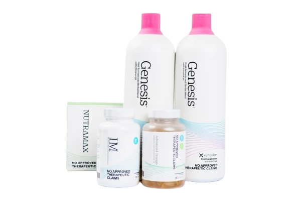 Supports your wellness journey with a simplified and balanced nutrition combo. The Wellness Bundle includes 2 bottles of Genesis, Nutramax, IM, and Advanced Omega—a thoughtfully curated set of products designed to complement your daily routine and help you feel your best every day.